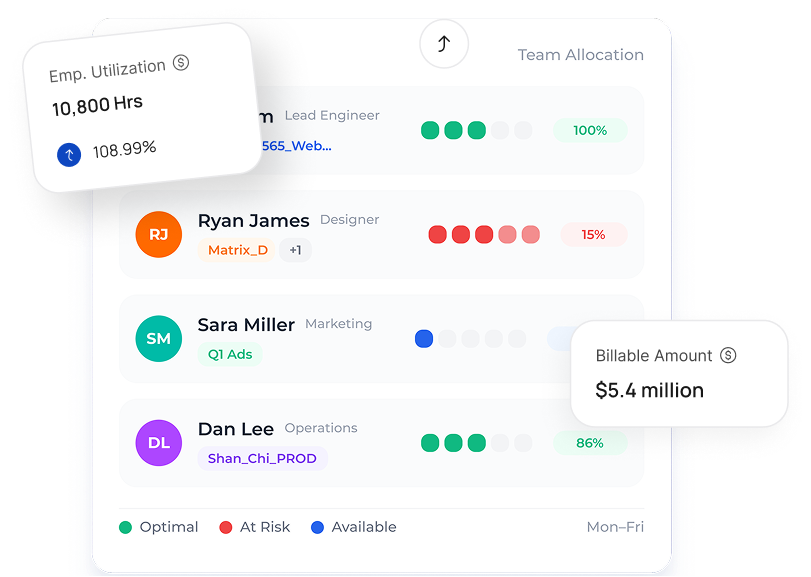 QwikTime uses actual time entries, project activity, and workload patterns to give you a true picture of team capacity not estimates. Your managers gain visibility into productivity, effort distribution, and team performance with